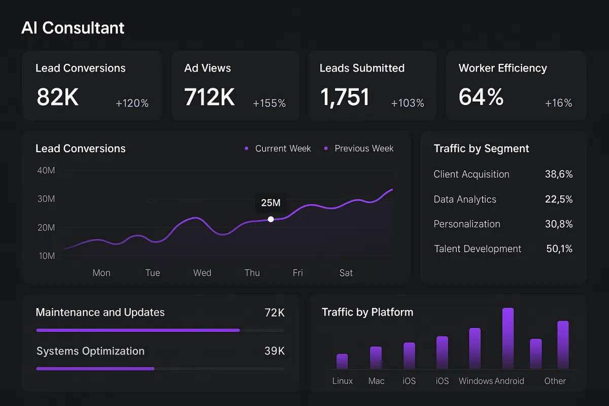 As AI reshapes business, our agency leads the way—delivering intelligent automation, data-driven insights, and tailored solutions to drive growth and innovation.